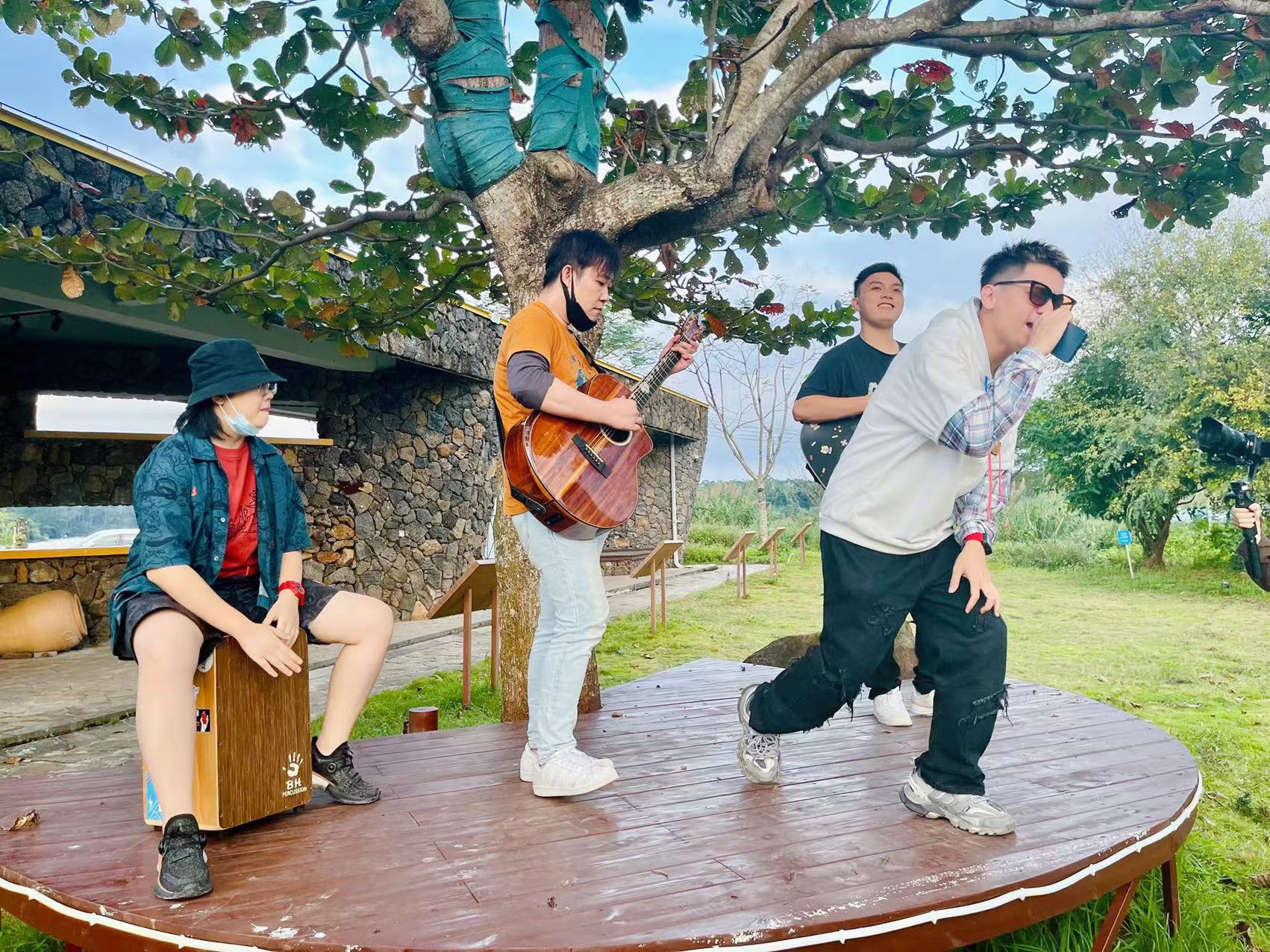 在落日咖啡营地,同学们开启了live show,用歌声表达对海南的喜爱,定制一部属于自己的青春音乐主题微综艺