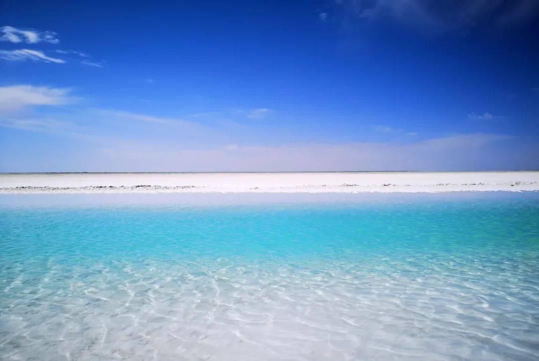 东台吉乃尔被称为青海的马尔代夫,湖水呈现出梦幻的提夫尼蓝色,清澈见底,沙滩洁白无瑕沙质细腻,躺在透明玻璃船上好像在爱丽丝梦游仙境一样。
