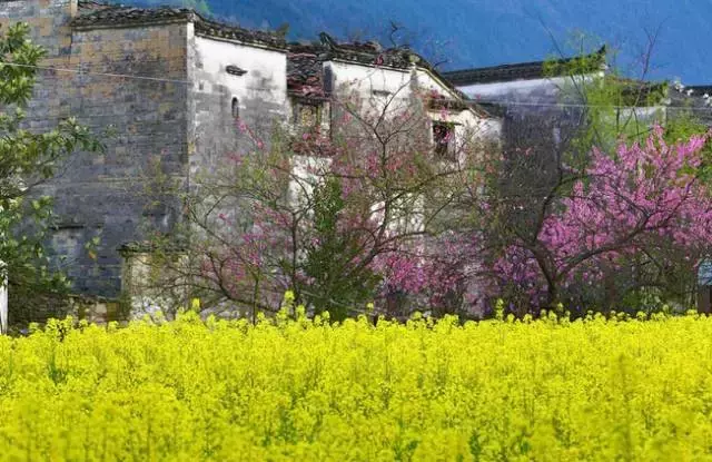 油菜花、梨花和桃花同时盛开,把庆源人家笼罩在一派“金山、银海、胭脂云”的景象之中。