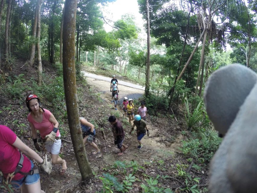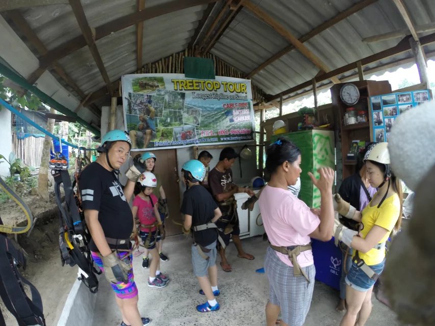 Jungle fly意为丛林飞跃,是在东南亚的一项著名的户外运动项目。苏梅岛中部山区有不少上百米的参天大树。这样的地形特点为户外爱好者开发出了这一项刺激但安全的运动项目。我们选择了一家费用为1200铢一人,有车接送,含简单糕点和饮料。