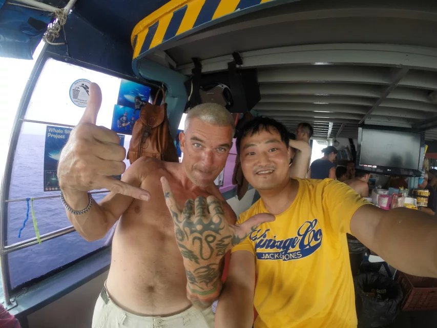 到了苏梅岛一定会参加当地的许多游乐项目休闲娱乐的项目,我们,第二天报了一个丹岛浮潜,两个人560Yuan人民币,可以通过淘宝预定,必须提前一天。