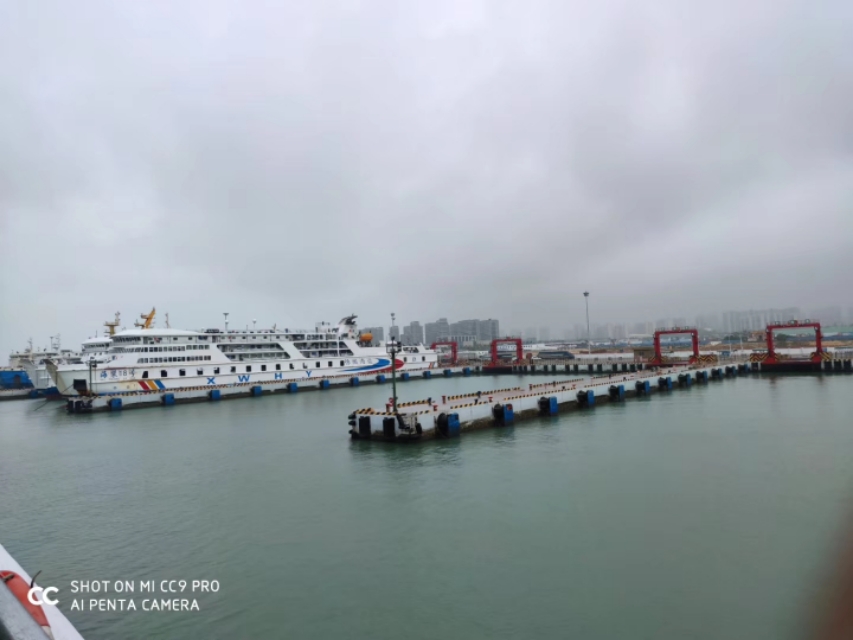 从徐闻渡海有两个港口,平均一小时一班船,两个港口相隔两公里。以前我经常坐新港渡火车的大船,可以装几百辆车,平稳舒服。今天我专门挑了海安港的渡海轮船,可以装60辆车。