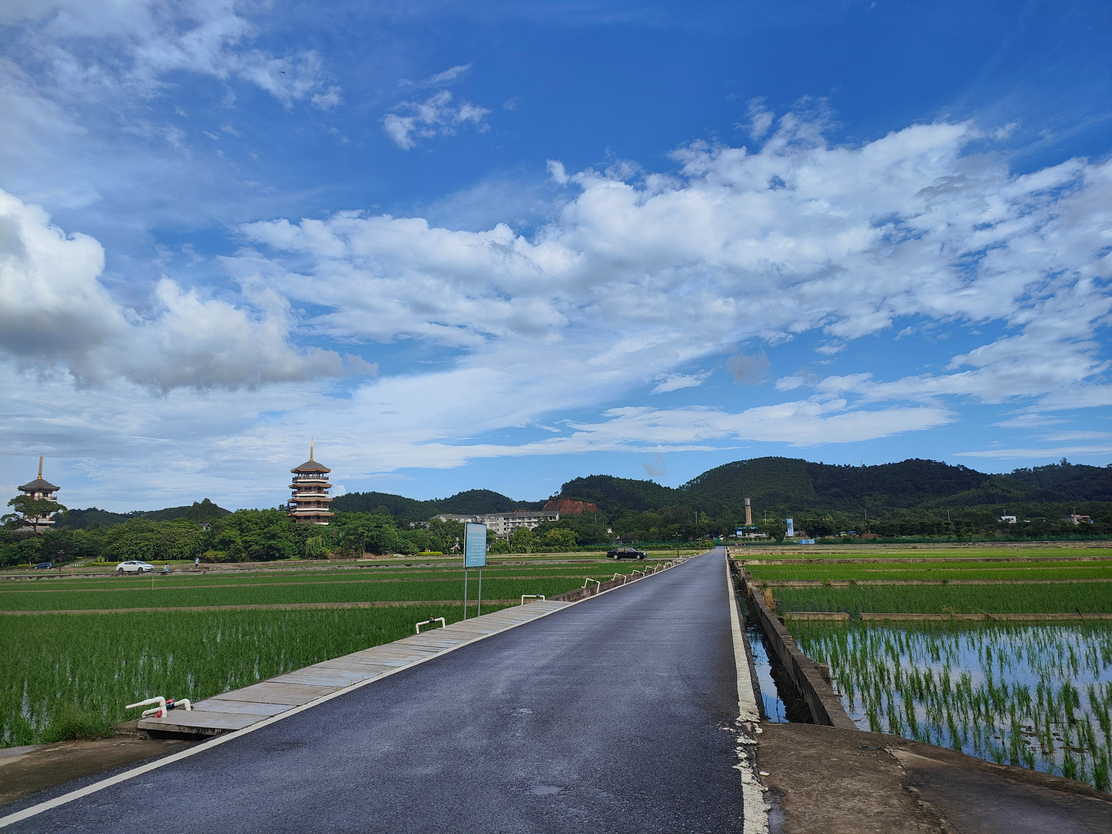 看完荷花还可以继续前行,再往里面有一个j樱花园,里面有很多草坪适合露营,可以和你的家人好朋友一起到这里来聚餐非常不错的,旁边是有一大稻田,满满的稻花香,而且空气很好。带小朋友来的话,小朋友肯定很喜欢,这地方有种家的感觉,乡村的气息。有两塔七八层楼高,有很多人会到上面拍照,这个地方视野很好哦!