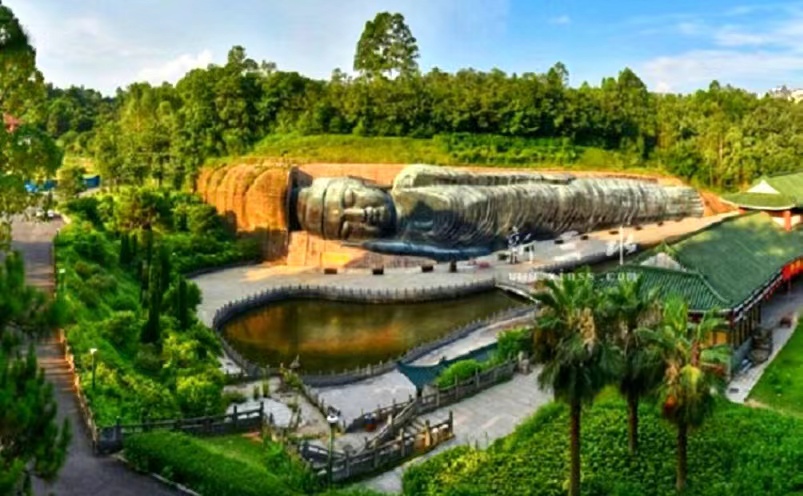 大卧佛位于森林公园天仙岩,是景区的主要景点。相传,六祖慧能禅师途径此地,看到天仙岩石,似乎灵光外放,仿佛就是一座卧佛,立即虔诚的跪拜,祈求佛祖能降福天下。大卧佛的造型,也是从这段传说中找到灵感的。如今,大卧佛长度约有108米,堪称世界之最。