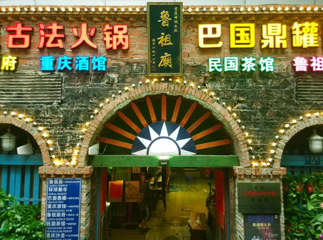 去过一千次解放碑,也不一定去过一次民国集市:这个两层的建筑藏在闹市之中,上层可以吃到古法火锅、巴国鼎罐。一层搭台听戏,搬板凳去民国茶馆喝茶,晚上再去重庆酒馆小饮几口,一句安逸说不尽。