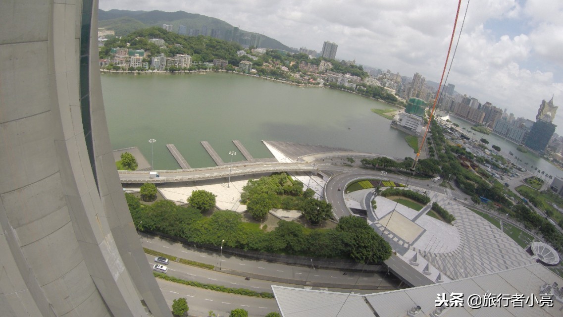 澳门观光塔顶层为大型旋转餐厅,可俯瞰全澳景色。站在塔的观光廊,澳门、珠海尽收眼底,晴天可以看到香港的大屿山岛。