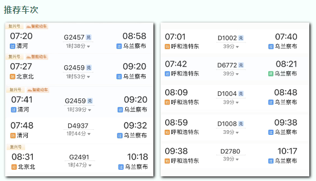 即可从北京来到呼和浩特