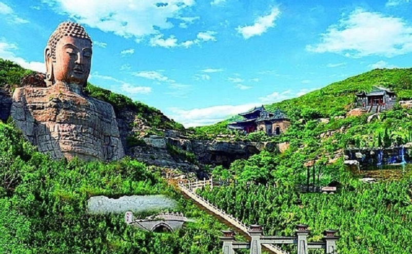 蒙山大佛,又称西山大佛,始建于北齐天保年间,距今已有约1500年的历史,是中国北朝时期体量最大的摩崖大佛和佛阁,也是中国最古老的摩崖石刻大佛,世界第二大佛。