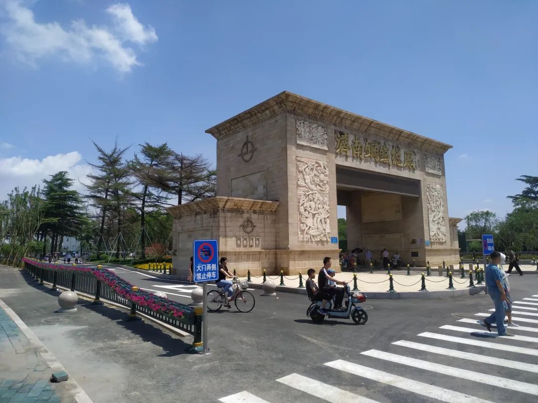 2、南门,又叫中门,这里保留了济南钢铁总厂的大门,大门正对着凤歧路,大门两侧的路也都挂着凤歧路的牌子。从这个门可以骑电动车或者自行车入园。