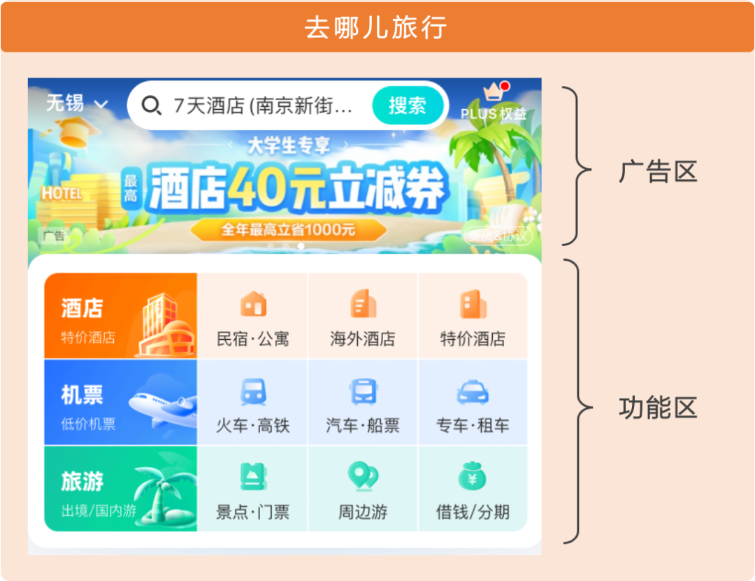 在首页的广告区或二级页面(如火车票、酒店页面)的广告区,经常还能领到一些优惠券,订票前一定要记得领一下。