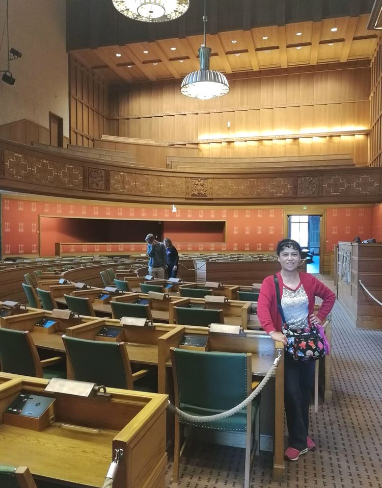 ▲留影于奥斯陆市政厅中