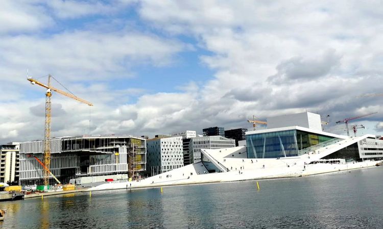奥斯陆歌剧院经过5年建设,2008年4月启用,在奥斯陆峡湾之滨拔地而起,最显着的特征是白色的斜坡状大理石和花岗岩的屋顶如一座出水的冰川,设计完美,精美绝伦,获世界建筑大奖。