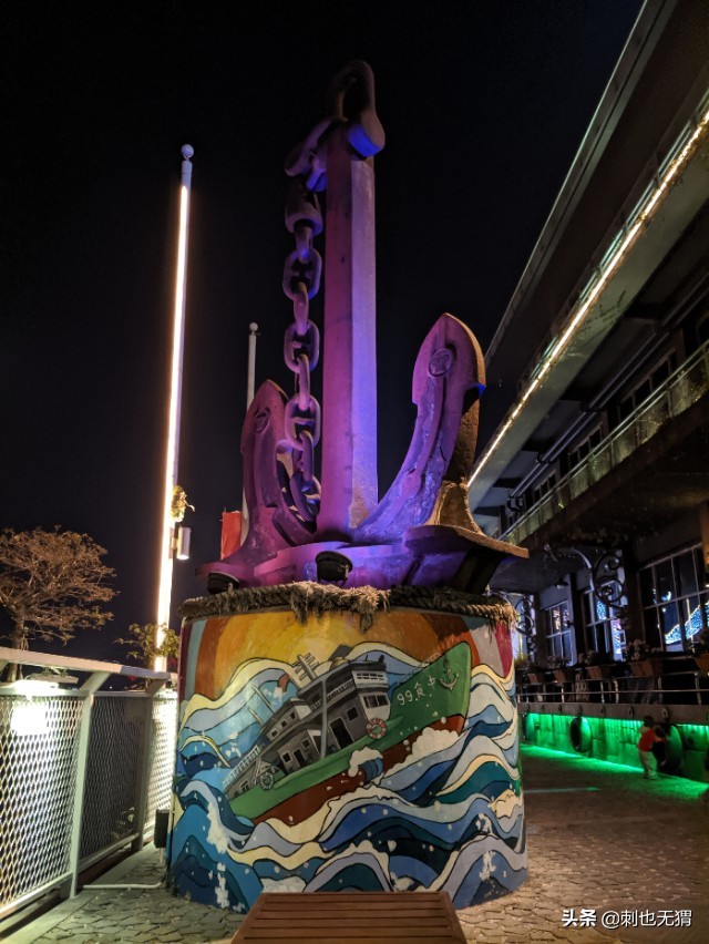 一边是依稀传来汽笛声的广阔河面,一边是灯火通明的商家店铺。临江有财路,交通发达便捷的地方,总能吸引人前往。从古到今,亦是如此。走在小道上,不时看到各个新奇有趣的拍照点,正好时间充裕,便走走停停拍了很多自觉满意的照片。