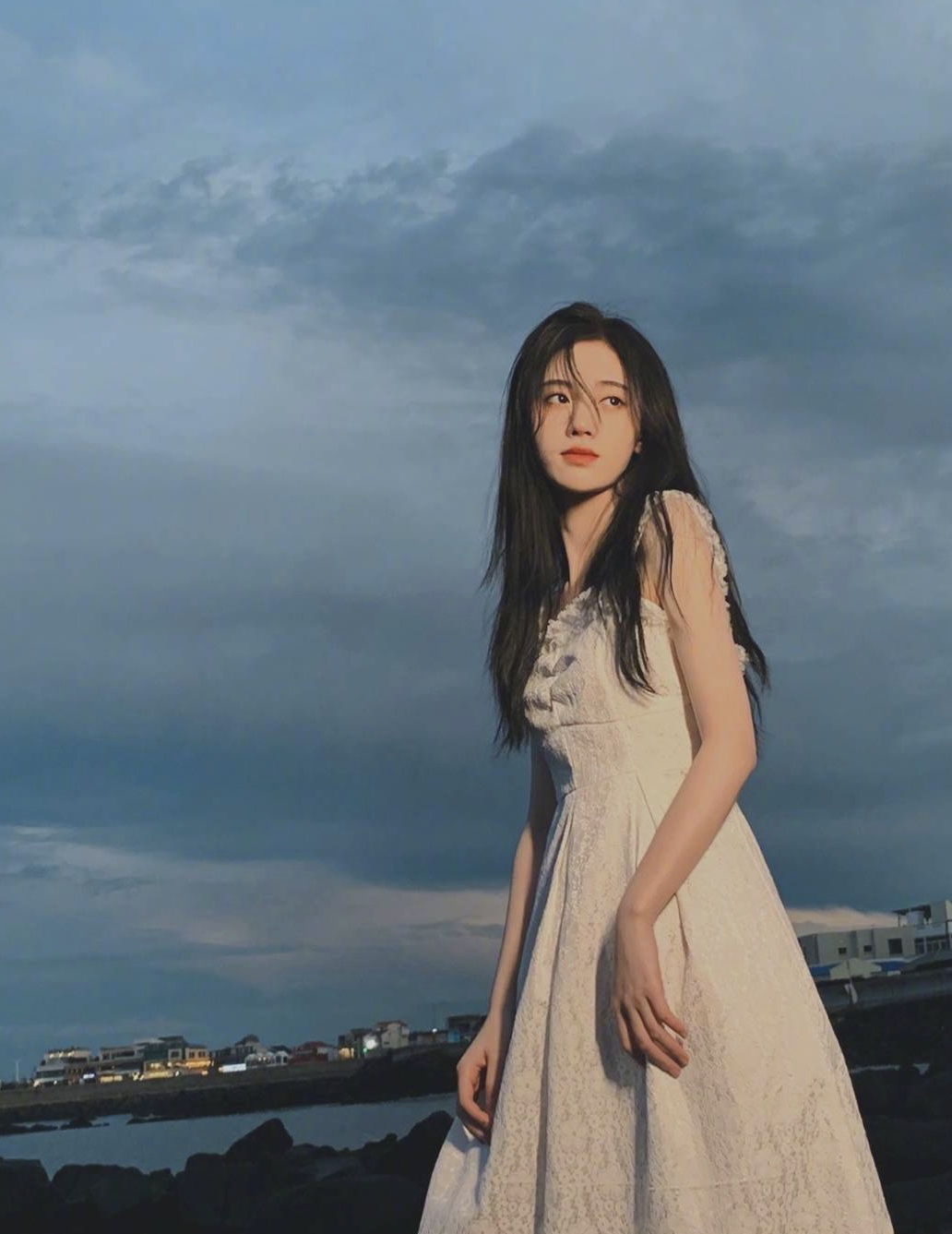 说鞠婧祎是“仙女”,没有一点问题。诺,照片上的鞠婧祎身穿一袭白色吊带长裙,选择白色长筒袜搭配黑色小皮鞋,看起来非常清纯甜美,超有邻家女孩的淑女气质。这件吊带裙使用了亮泽的布料,看上去很更加高级显气质,也相当有质感。“黑白”搭配,有很好的撞色的效果,造成强烈的色彩对比视觉,与身后的画风很是和谐。