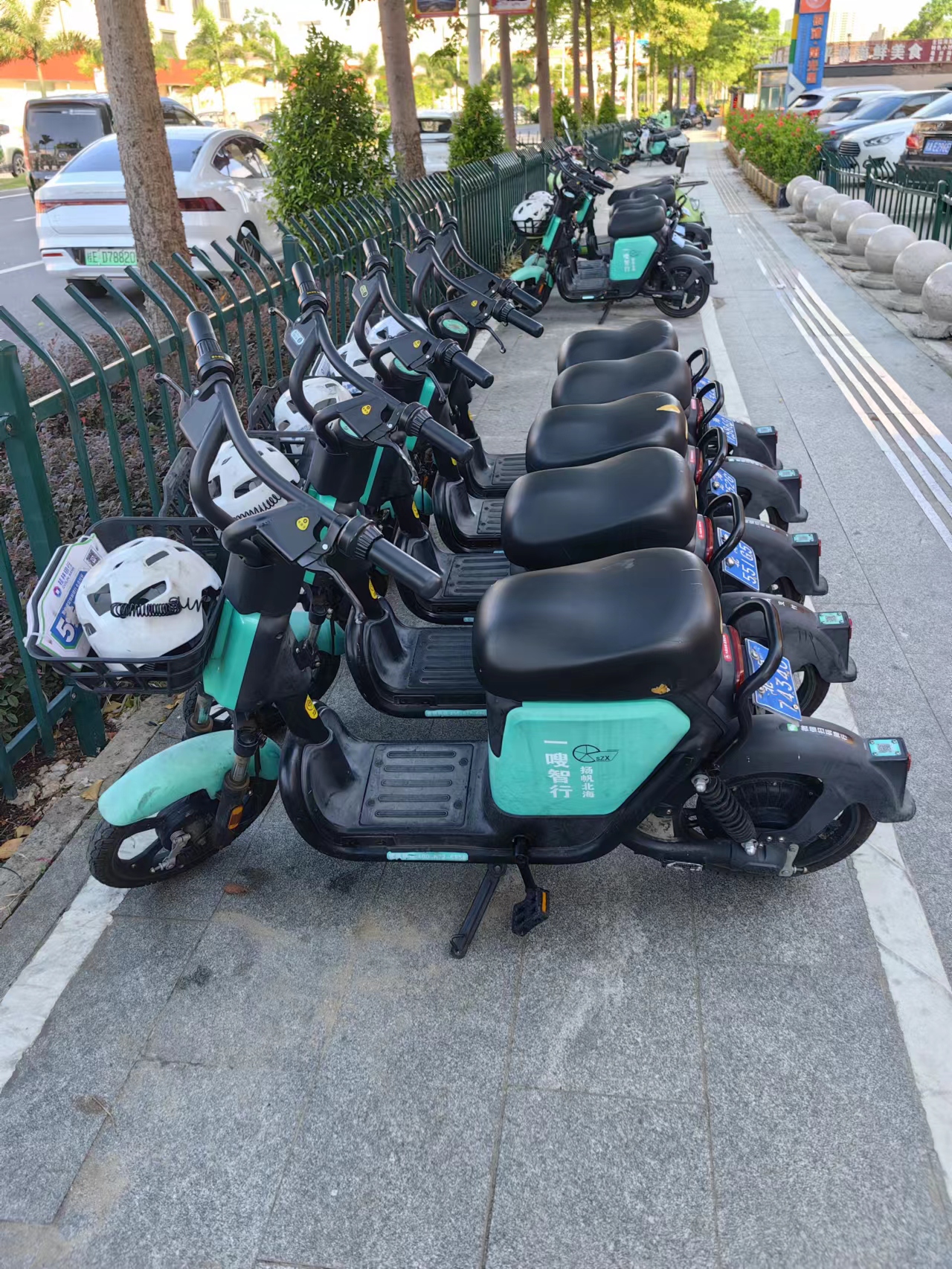 路边的共享电动车 ,10分钟3元。海边玩水骑回去。坚决不走路。