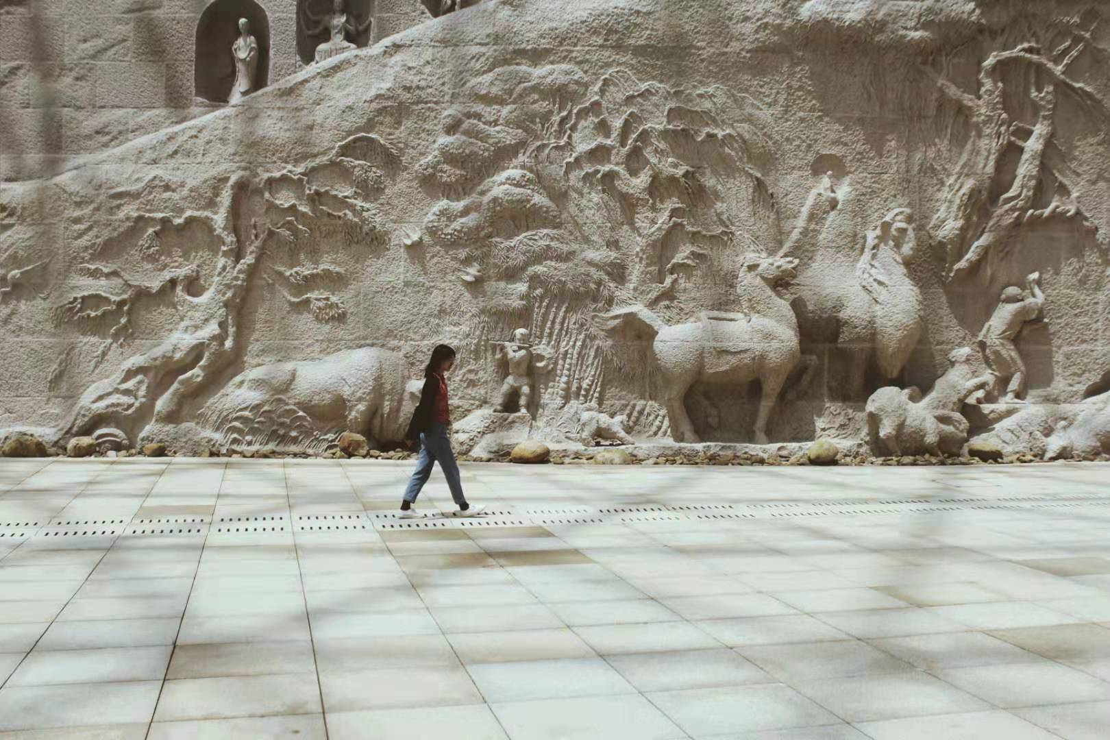 ②入口处的走廊。弧形的走廊,精致的壁画,阳光刚好照进来,在这里拍几张透视照片再合适不过了。