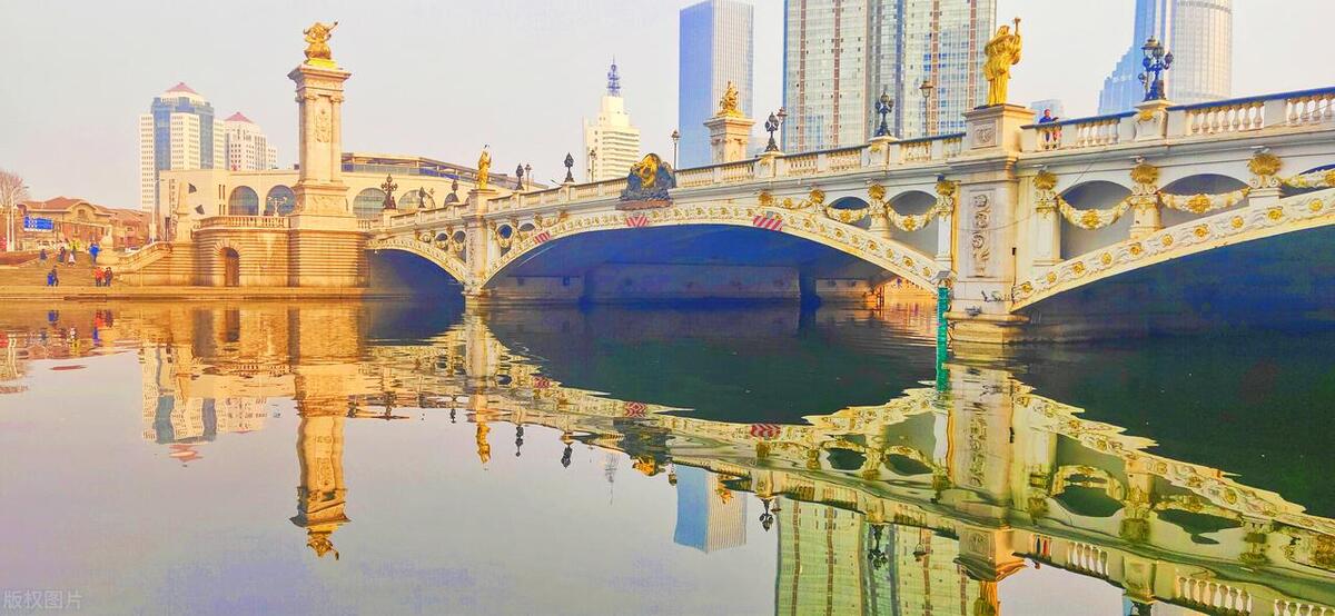 是海河上一道靓丽的景点,桥整体为著名的西洋古典式建筑风格,金碧辉煌的古桥,有着近百年的历史,这是古典与时尚的完美结合,在桥上看一场浪漫的日落,华灯初上,璀璨的海河夜景,十分迷人。