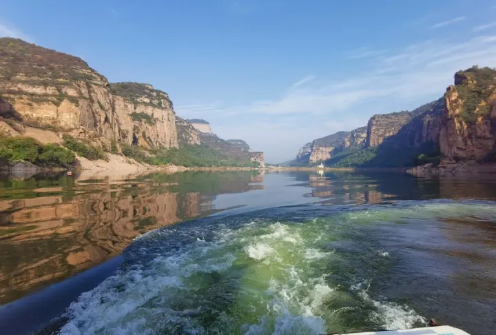 京娘湖是上世纪60年代建造于口上村的一处蓄水工程,亦称口上水库,因宋太祖赵匡胤送京娘的故事发生在这一带,故得此名。这里山水环绕,群峰竞秀,层峦叠嶂,植被覆盖率高,川谷深幽。京娘湖属于丹霞地貌,这里赤壁丹崖,色彩斑斓,林木茂盛,波光粼粼,风景秀美,造化神奇。大自然的鬼斧神工使这里成为远离城市喧嚣的世外桃源。可以乘船游湖,也可以登上湖边的山岭观景拍照。