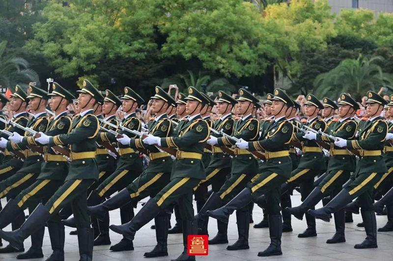 铿锵步履整齐划一地通过八一广场