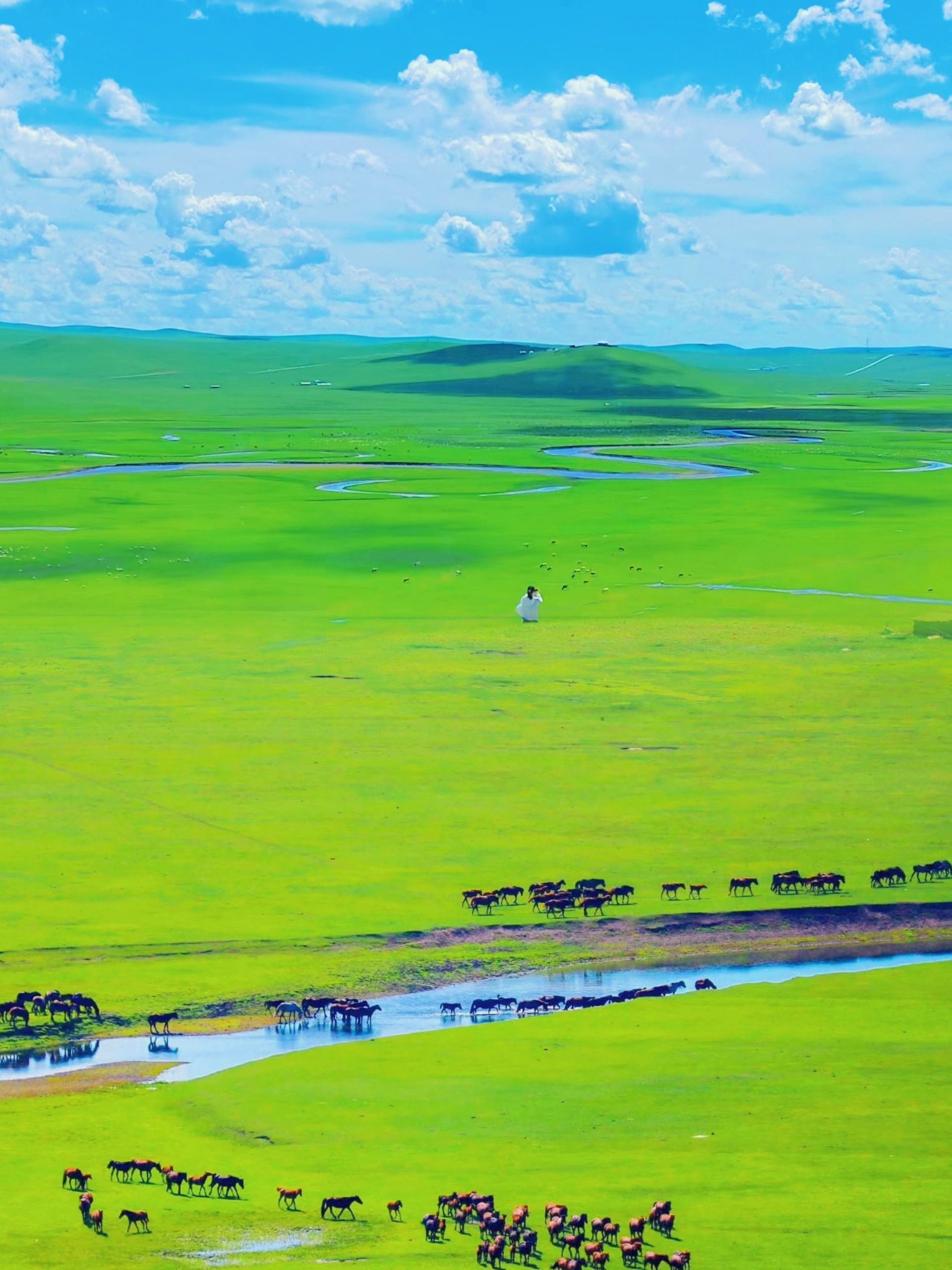 在蒙古草原上,迎接你的是碧空万里,连绵起伏的丘陵和草原,一片宽广壮美的景象。从远处传来悠扬动听的马头琴声,伴随着牧民高亢、淳朴动人的歌声,犹如在草原上奏响了一曲动人心魄的交响乐,让你不由自主地被草原的美丽和生机所吸引。