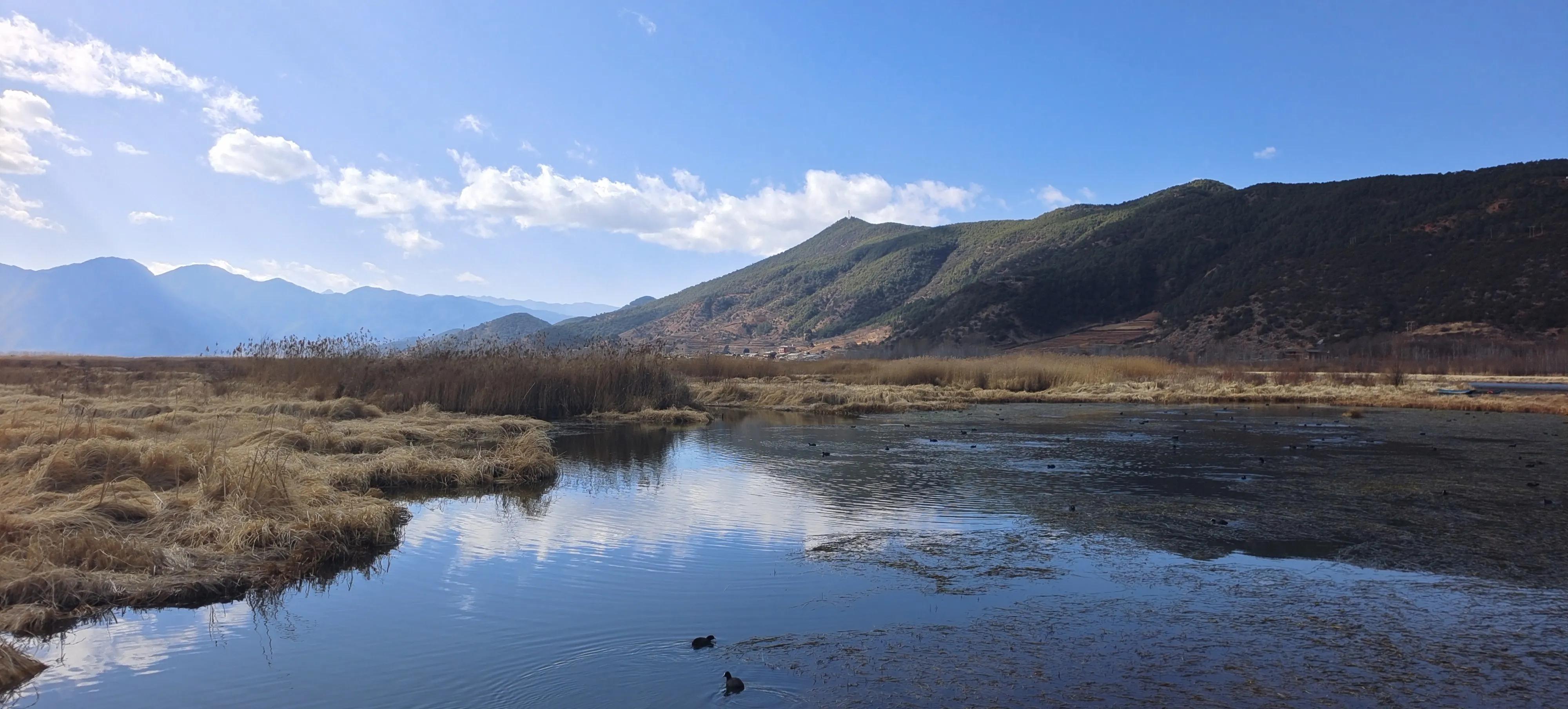 坐车沿湖边公路慢慢绕湖穿过了云川桥(连接湖两边的云南四川省)、万亩沼泽来到了走婚桥,这个泸沽湖上唯一的桥是摩梭青年男女谈情说爱的地方,它是摩梭青年走婚的前戏,按照师傅介绍的当地习俗走过桥的时候不能回头,不过桥两边的风景还吸引人们驻足观看拍照留念,尤其是我喜爱的芦苇和野鸭子。