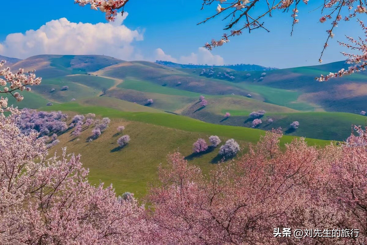 这片中世纪遗留下的原始野杏林,是新疆乃至世界最大最集中的野杏林分布区,占地有3万多亩。置身其中,如入绝美之境,仙气十足。当初绿的山草,遇上粉白色的杏花,延绵十几公里,是春天最轻柔温暖的颜色。