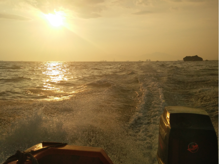 天后宫离海边很近,我们下午五六点的时候就去了海边。人超级多的,套用我朋友说的一句:蒸虾饺,哈哈。。。玩得最值的还是游艇,四个人阿姨报了150元包来回,穿梭三个岛,我们砍了下价,120元。海风很大,不过看着波涛汹涌的海浪也是很爽。