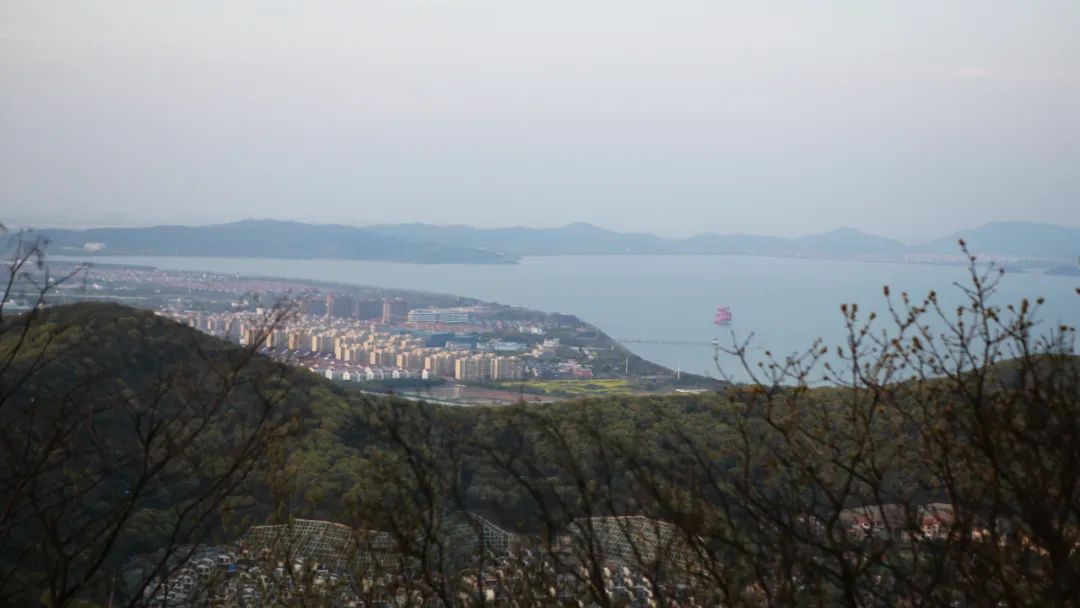 太阳已经下山了,很快就要天黑了,赶紧原路返回。继续看向桃坞方向,近处是高尔夫球场,略有些遮挡。