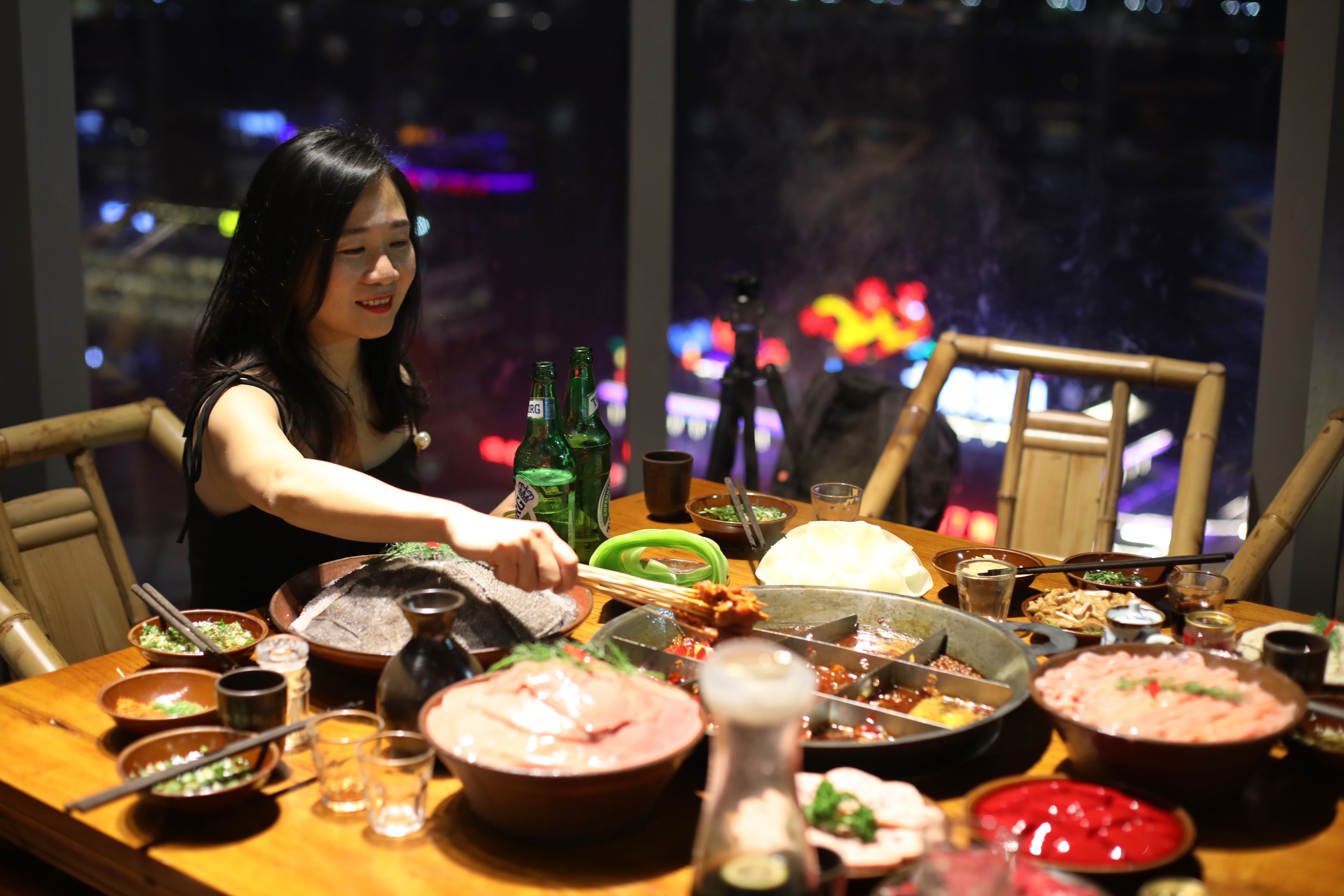 珮姐火锅是重庆火锅界的网红,来福士的这家店每天晚上都是人头攒动,除了极富老重庆即视感的装修风格外,它拥有很棒的景观,坐在窗边的位置,可以看到窗外的长江和嘉陵江,色彩斑斓的轮船在江上来来往往,独揽那么奢华的一面江景的火锅店,在重庆是难得得。