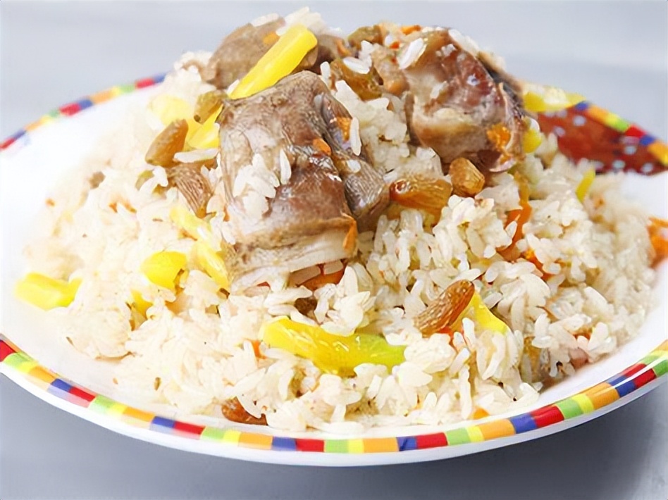 2.手抓饭:维吾尔族传统的美食,将米饭和肉类、蔬菜等一起放在一起用手抓食用。