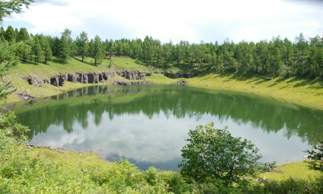 阿尔山天池,位于阿尔山市东北74公里的天池岭上,由火山喷出物落在喷火口周围形成一道环状围墙,中间形成圆形凹坑,多年积水而成。