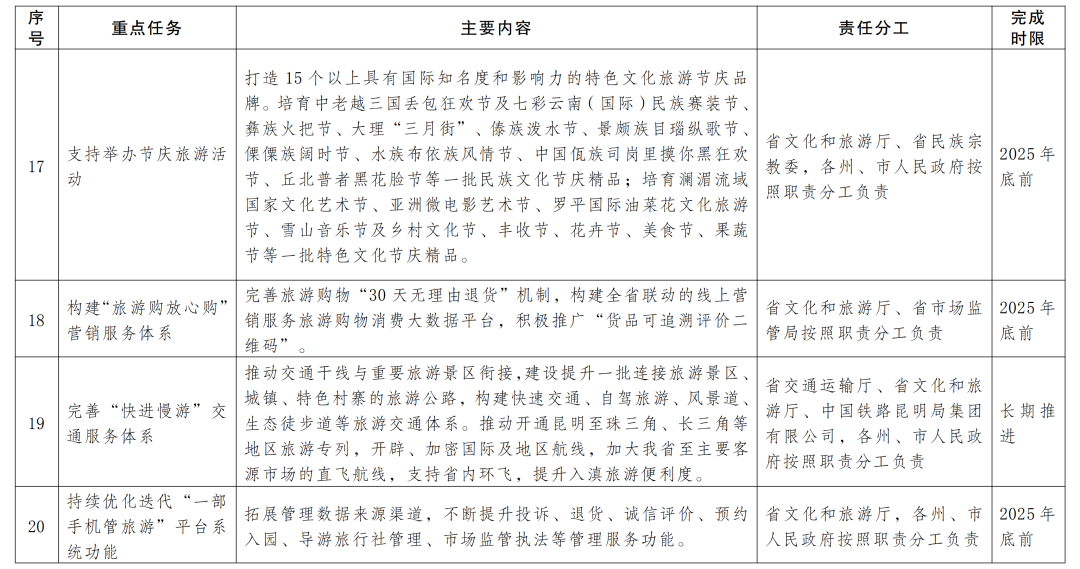 附件:云南省“十四五”旅游业发展实施方案重点任务清单