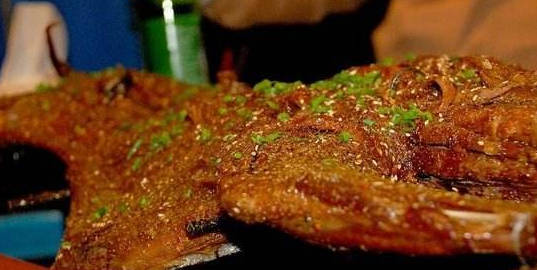 一种农家土鸡,但与在笼子里饲养的不同,而是自然放养的,晚上都睡在树上。肉质特别扎实,烤出来外焦里嫩,配上清香芬芳的蘸料,一口下去,美妙无比。