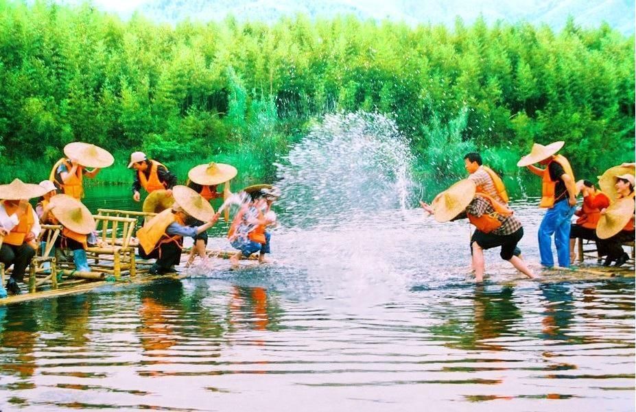 竹筏漂流的终点附近是双溪乐园,这里可在露天嬉水区游泳,在梦溪滩休闲区烧烤、聊天、发呆;在游乐园区体验激流勇进、勇敢者转盘;乘坐摩天轮观双溪竹海全景,还有碰碰车、骑马、竹海鬼屋等游乐项目。