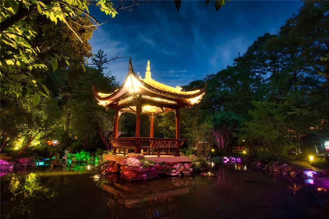 河风温润宜人,梵音在广场中弥漫,漫步广场中,放松身心,发现灯火下各色景观的迥异于白天的魅力。