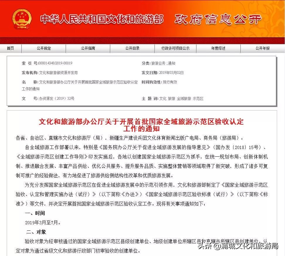 文化和旅游部办公厅关于开展首批国家全域旅游示范区验收认定工作的通知(全文如下)
