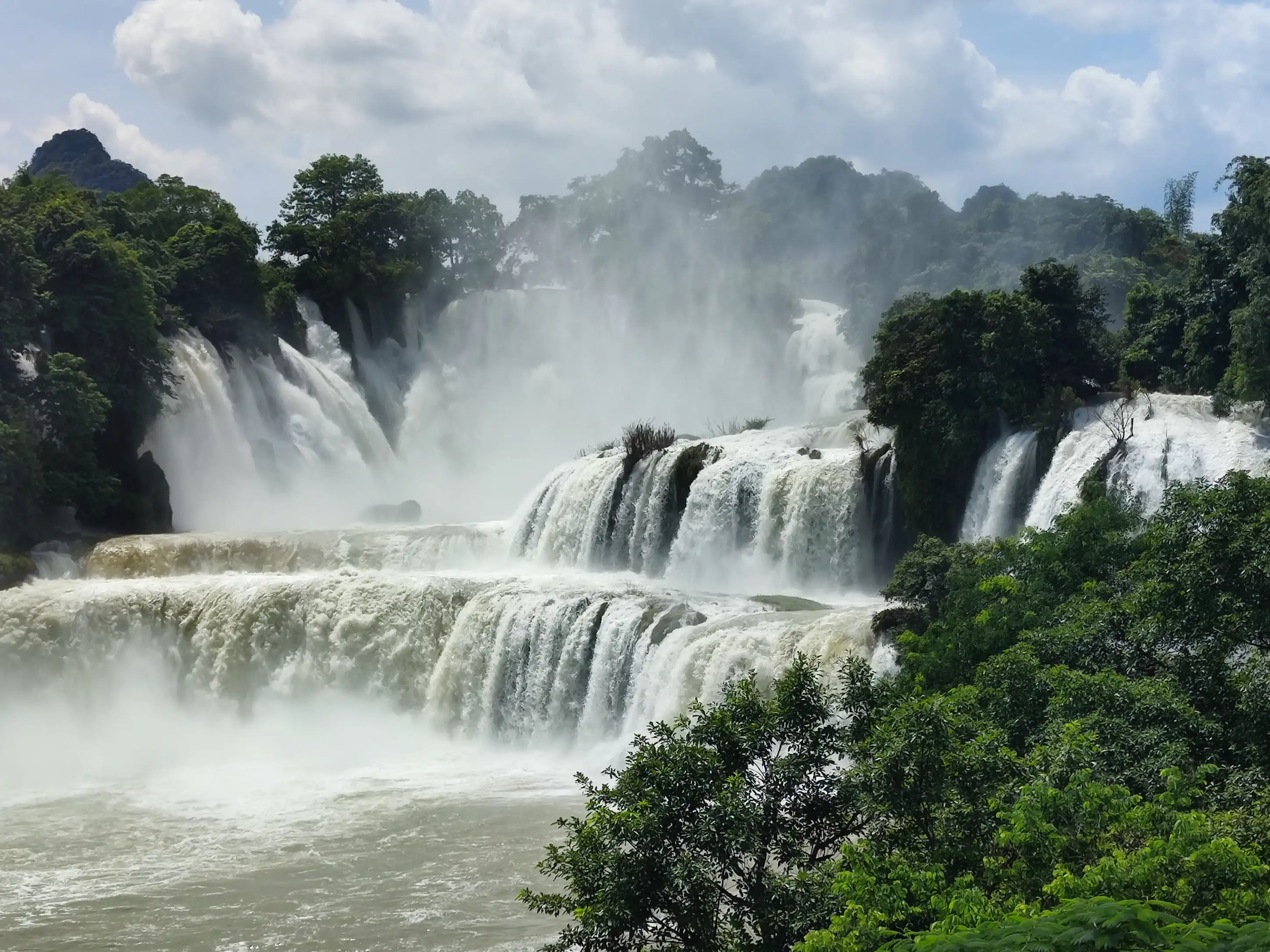☞【德天跨国瀑布】位于广西壮族自治区崇左市大新县硕龙镇德天村,是亚洲第一大跨国瀑布,世界第四大的跨国瀑布,瀑布三级跌落,最大宽度200多米,纵深60多米,落差70余米。地质为厚层状白云岩,也是东南亚最大的天然瀑布,被国家定为5A特级景点。