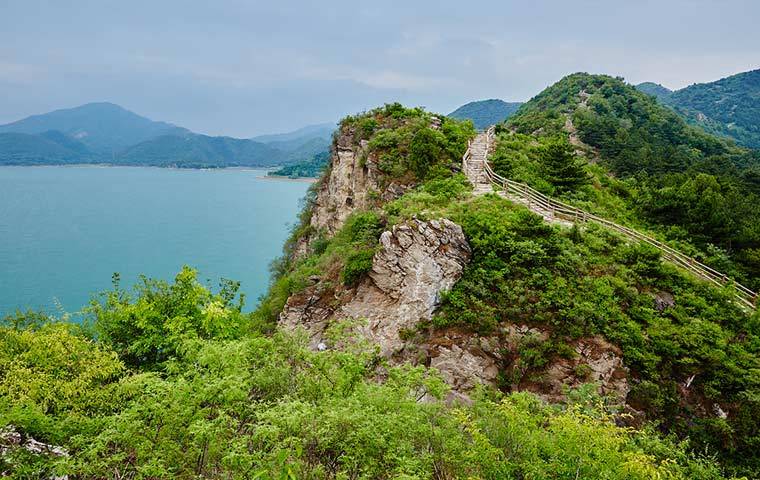 锯齿崖是金海湖景区的另一个亮点,它位于金海湖的半岛上,山峰形状像锯齿,因此得名。锯齿崖崖壁上有一个形状像鱼的洞口,名为“金鱼洞”,洞内有通孔,水浅时才能看到。锯齿崖还有其他景点,如鸽子洞、驼峰、董、葛洞等,让人们可以尽情探索。