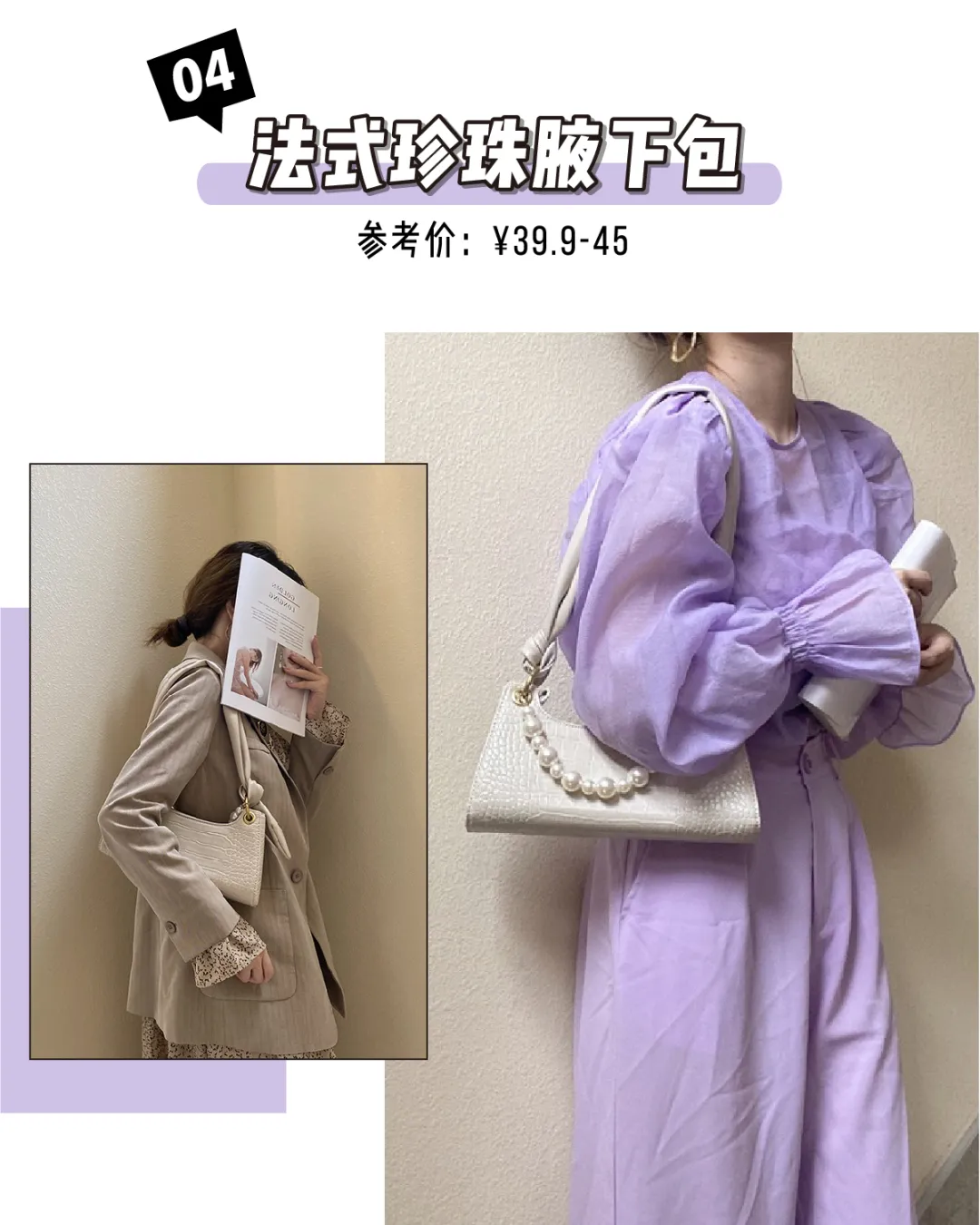 牛仔布艺与珍珠元素的碰撞,真是又甜又酷!用来搭配裙子和裙子都很好看~这样小众的设计,背出门也不容易撞款哦。
