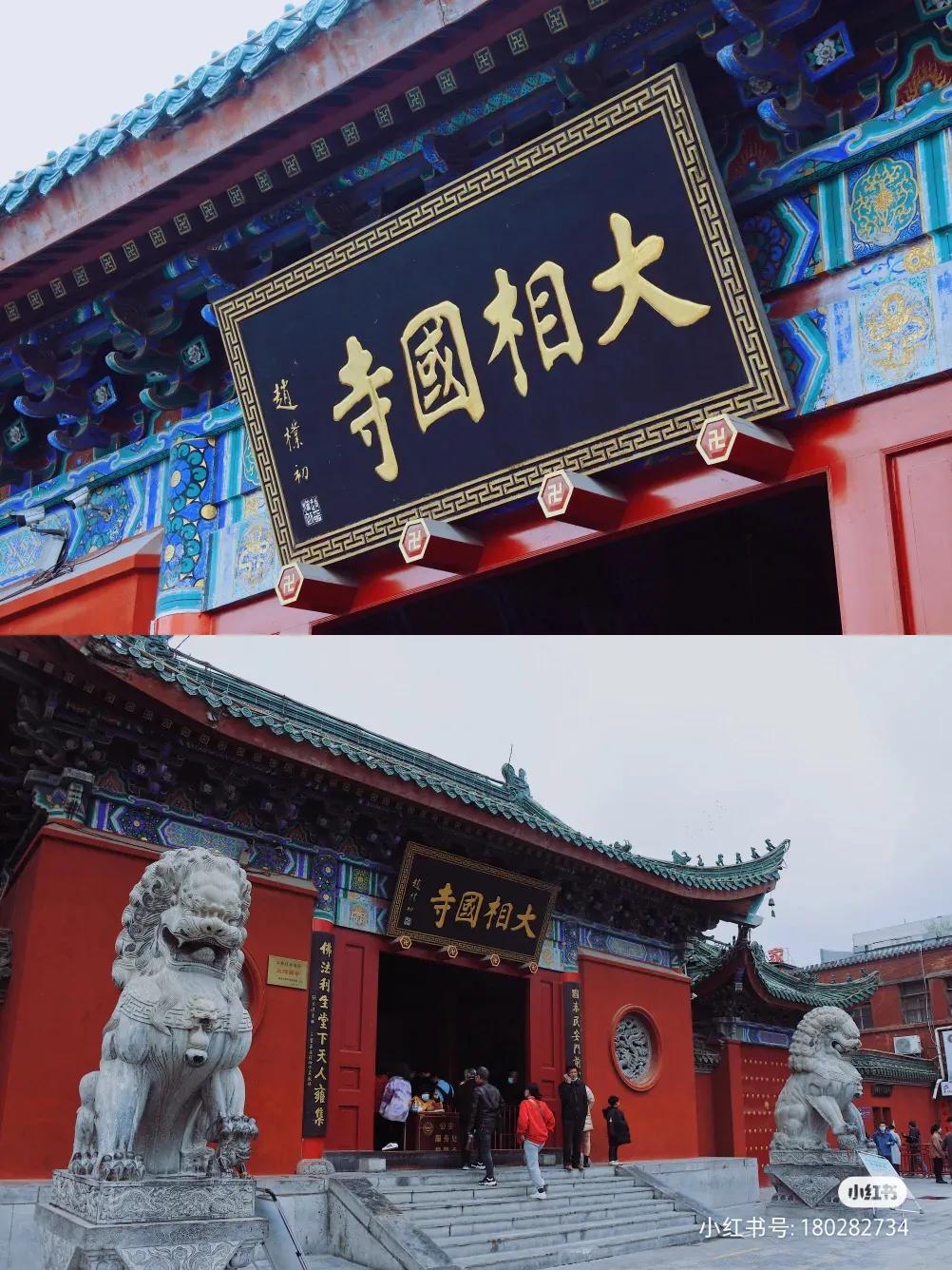 大相国寺,原名建国寺,位于开封市自由路西段,是中国著名的佛教寺院,始建于北齐天保六年(555年),唐代延和元年(712年),唐睿宗因纪念其由相王登上皇位,赐名大相国寺。北宋时期,相国寺深得皇家尊崇,多次扩建,是京城最大的寺院和全国佛教活动中心。后因战乱水患而损毁。清康熙十年(1671年)重修。现保存有天王殿、大雄宝殿、八角琉璃殿、藏经楼、千手千眼佛等殿宇古迹。1992年8月恢复佛事活动,复建钟、鼓楼等建筑。整座寺院布局严谨,巍峨壮观,2002年被评定为国家AAAA级旅游景区。