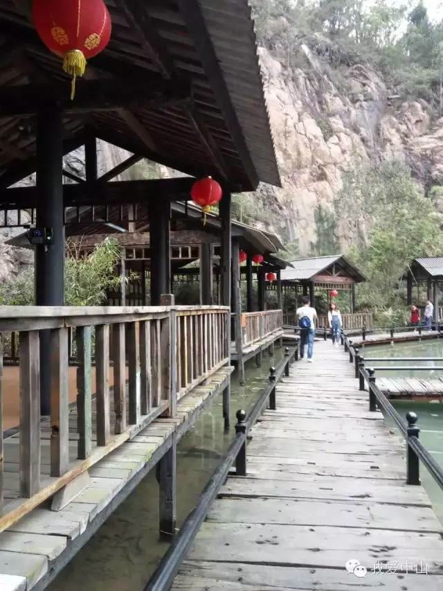 这个景点内还有一个引入山泉水而成的湖,湖靠绝壁,湖边搭起凉亭,湖中间还有一个舞台,山庄可以提供变脸、魔术等表演。这是一家地道的农家餐馆,主打本土特色菜,中山传统的九大簋,也是这里招牌的宴席之一。