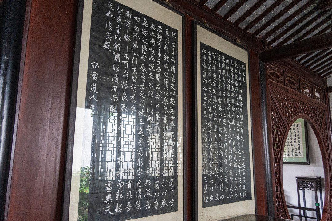 第二处容易忽视的地方,就藏在园中主厅退思草堂内隔屏后。
