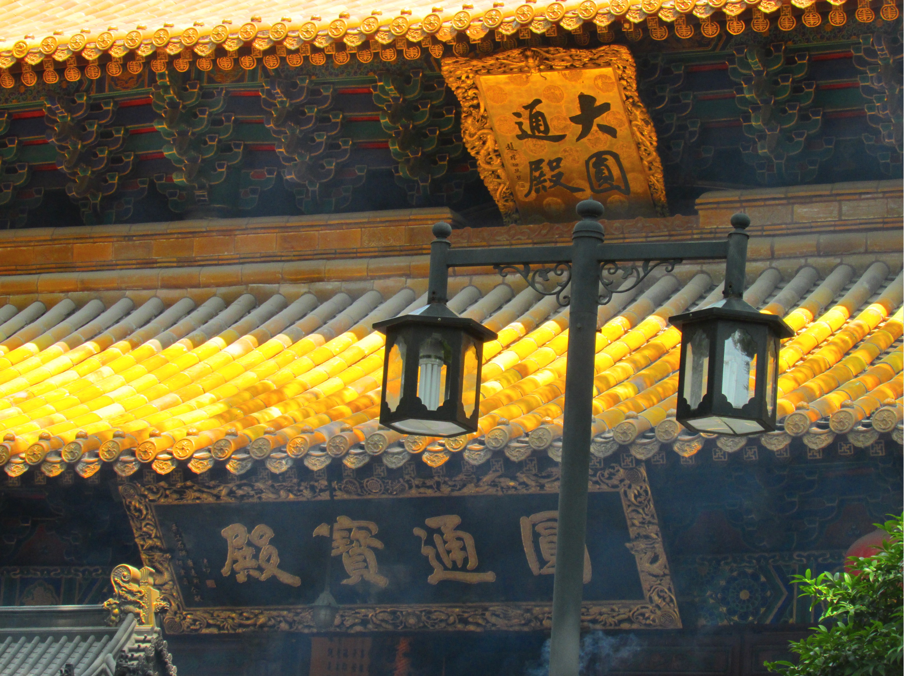 其中观音殿又称九龙殿,九龙雕刻十分精致,可谓栩栩如生。据说,九龙殿内的九龙藻井及部分琉璃瓦乃是从南京的明代宫殿拆迁而来,被誉为普陀山三宝之一。