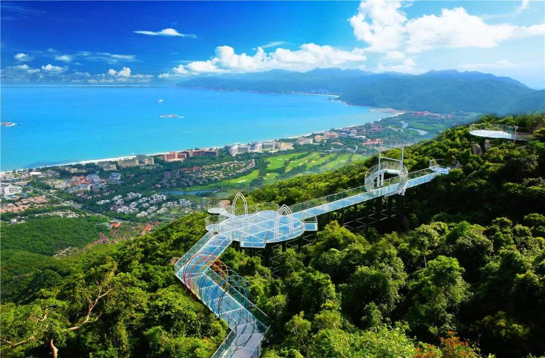 徒步丈量神秘雨林,400米的全海景玻璃栈道,漫步于此,可以将春季亚龙湾的海景、沙滩、森林、天空尽收眼底,俯瞰亚龙湾,极目中国南海。《非诚勿扰II》、《亲爱的,热爱的》三亚主要取景地。