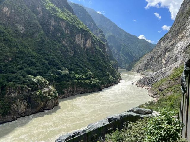 丽江虎跳峡景区内的栈道非常平整,走起来很轻松,更适合一家老小出行,休闲游玩。如果实在体力不支,还可以乘坐景区的人力车。从丽江这边也可以看到江对岸香格里拉虎跳峡的步道,如果体力充沛,还可以去香格里拉虎跳峡徒步,会别有一番感受。