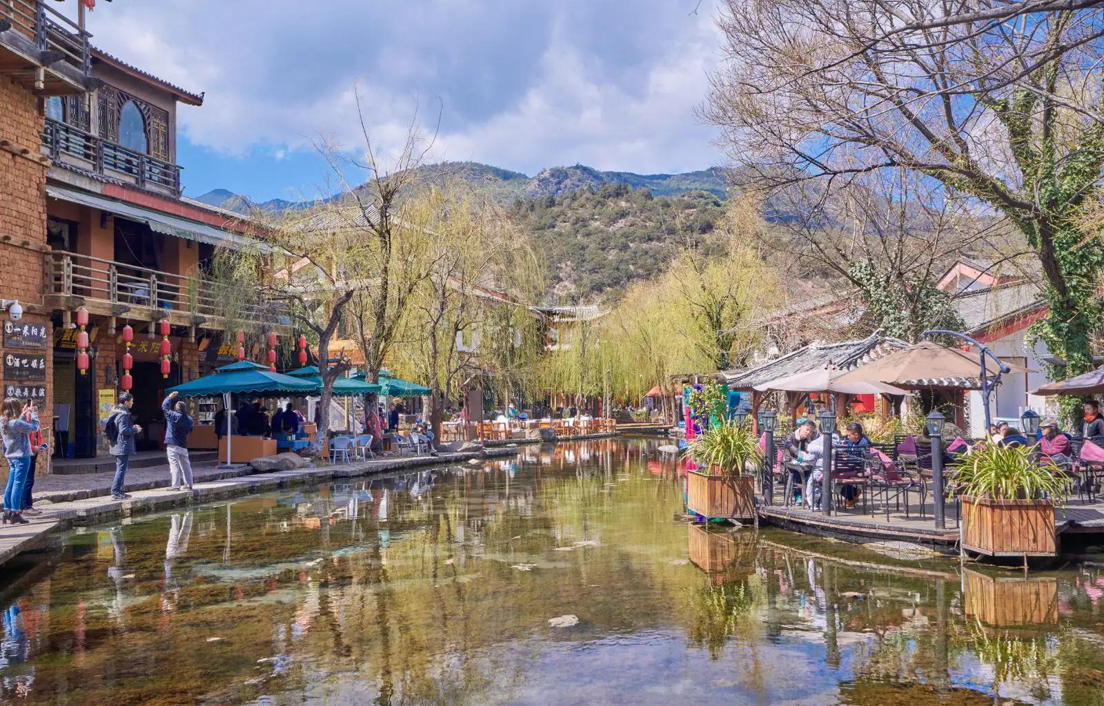 束河古镇位于丽江古城西北部,是当年茶马古道上的重要驿站。古镇依山傍水,构造布局与大研古城相仿,屋舍错落有致,巷道间流水潺潺,环境优美。难得的是,由于旅游开发较晚,束河古镇比大研古镇要幽静古朴得多。