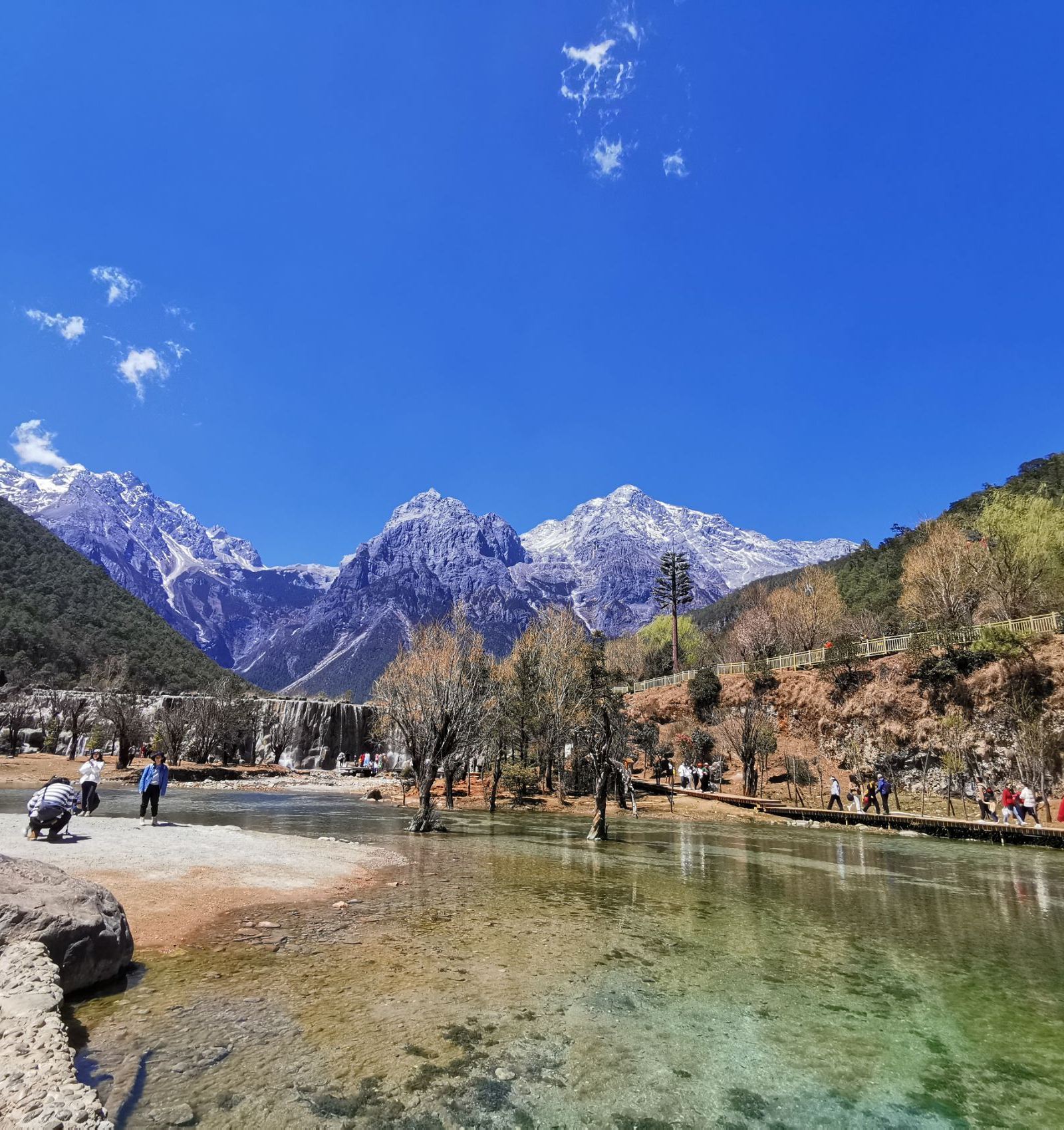 黑龙潭公园位于古城北象山脚下,从大水车溯流而上,有一个晶莹清澈的泉潭,那便是黑龙潭了。这里可以拍摄美丽的玉龙雪山,观看院内的很多古建筑,还能爬上象山俯瞰古城,是古城内的重要景点。
