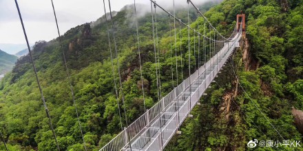 走上天桥沟玻璃桥,每走一步,脚下玻璃就发出爆裂声音,有点吓人,吓得小腿直抖。在海拔最高的360°玻璃观景台上,观赏风景,人像翱翔在云端,是拍摄风光的最佳点,也适合自拍。近300米长的玻璃桥,约36层楼高,有“东北第一玻璃桥”之美称。身边的小朋友一声尖叫,一声大喊“好玩”,吓得走拍君额头直冒汗。