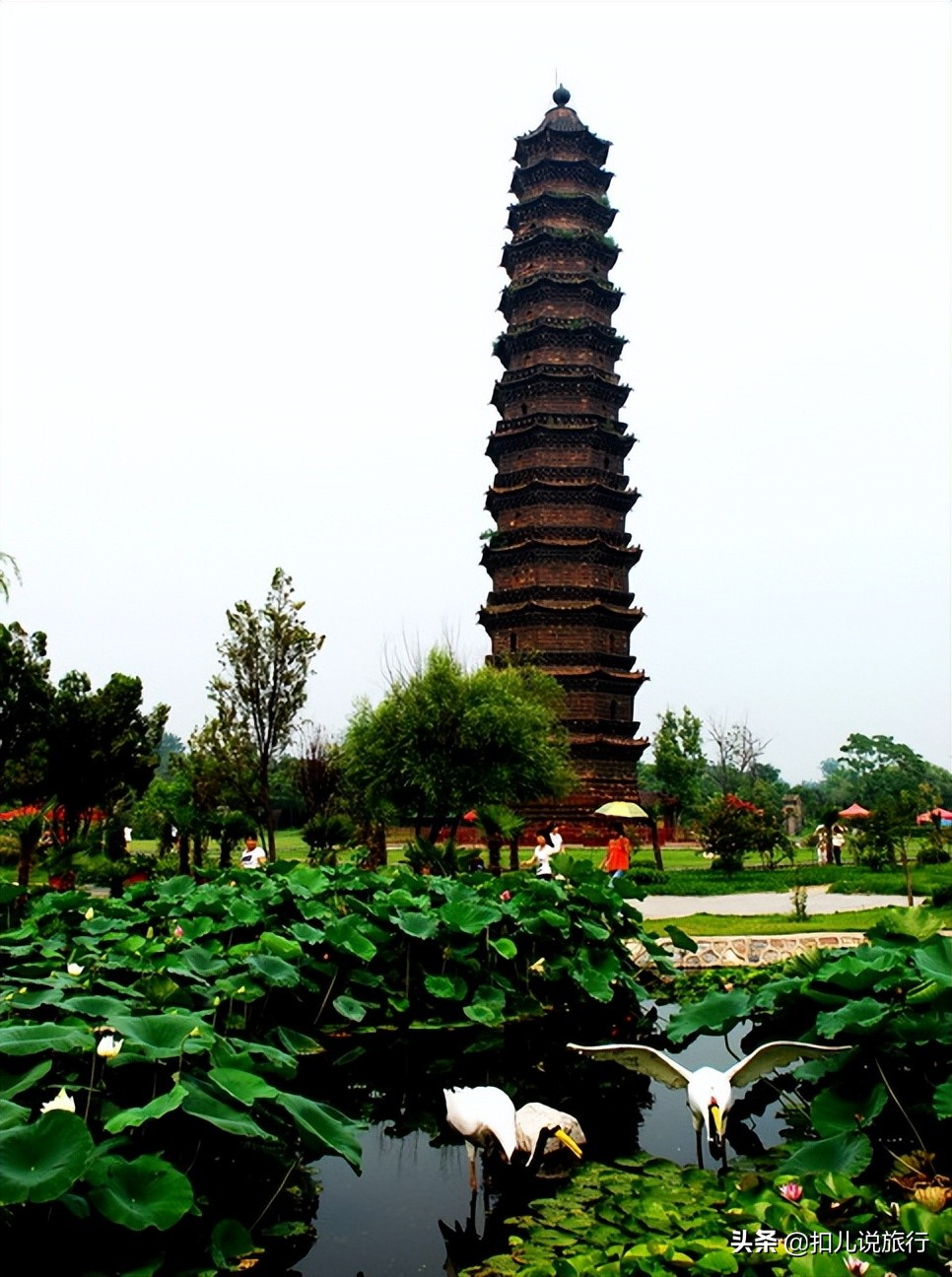 铁塔有13层,高度是55米多,据史料记载,繁塔当时是一座九层塔,有80多米,比铁塔还高,所以有句顺口溜,铁塔高,铁塔高,铁塔只及繁塔腰。