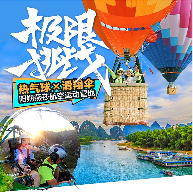 燕莎热气球,是一种新型的旅游体验方式,最著名的莫过于土耳其热气球之旅。而阳朔的山水美景,如诗如画,骑行是一种旅游方式,徒步是一种旅游方式,竹筏漂流是一种旅游方式,不同的旅游方式看的风景也各异,想象一下,处在几十米的高空中俯瞰阳朔的山、阳朔的水,是种什么样的心情,哇喔,震撼、刺激、舒畅,阳朔的美景尽收眼底。阳朔空中游也成为阳朔旅游新的打卡方式,除了热气球,现在还推出了动力滑翔伞,挑战空中翱翔,看最美的阳朔!